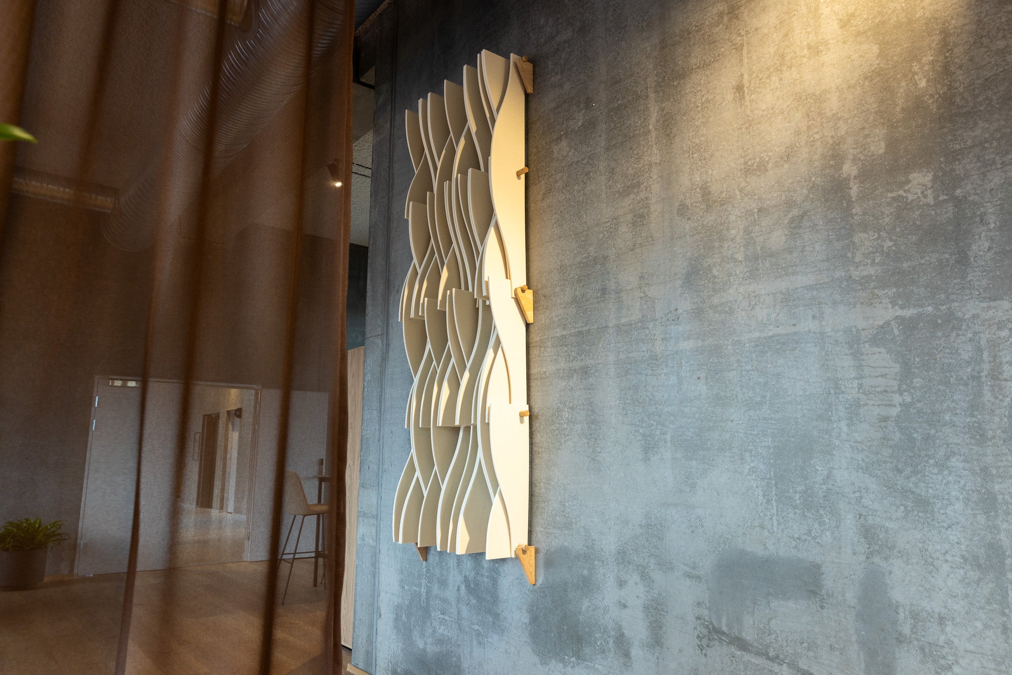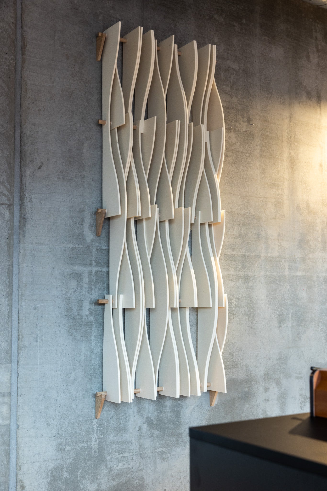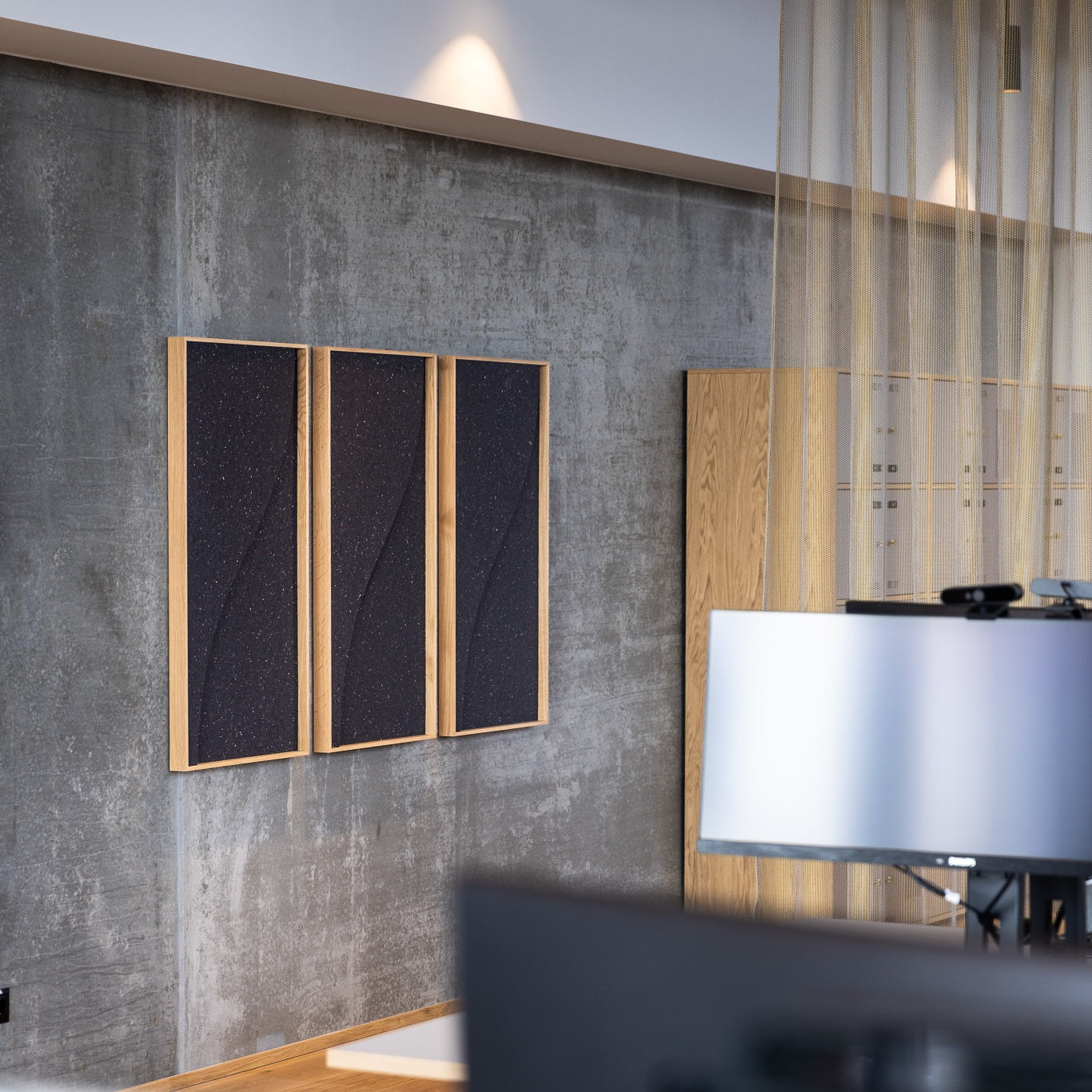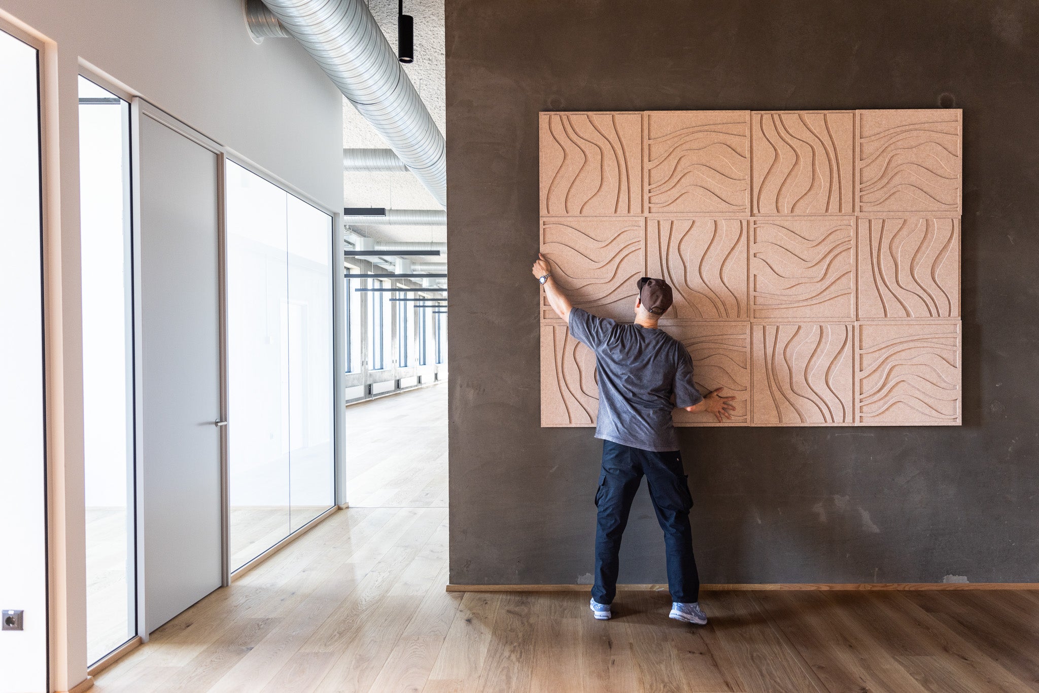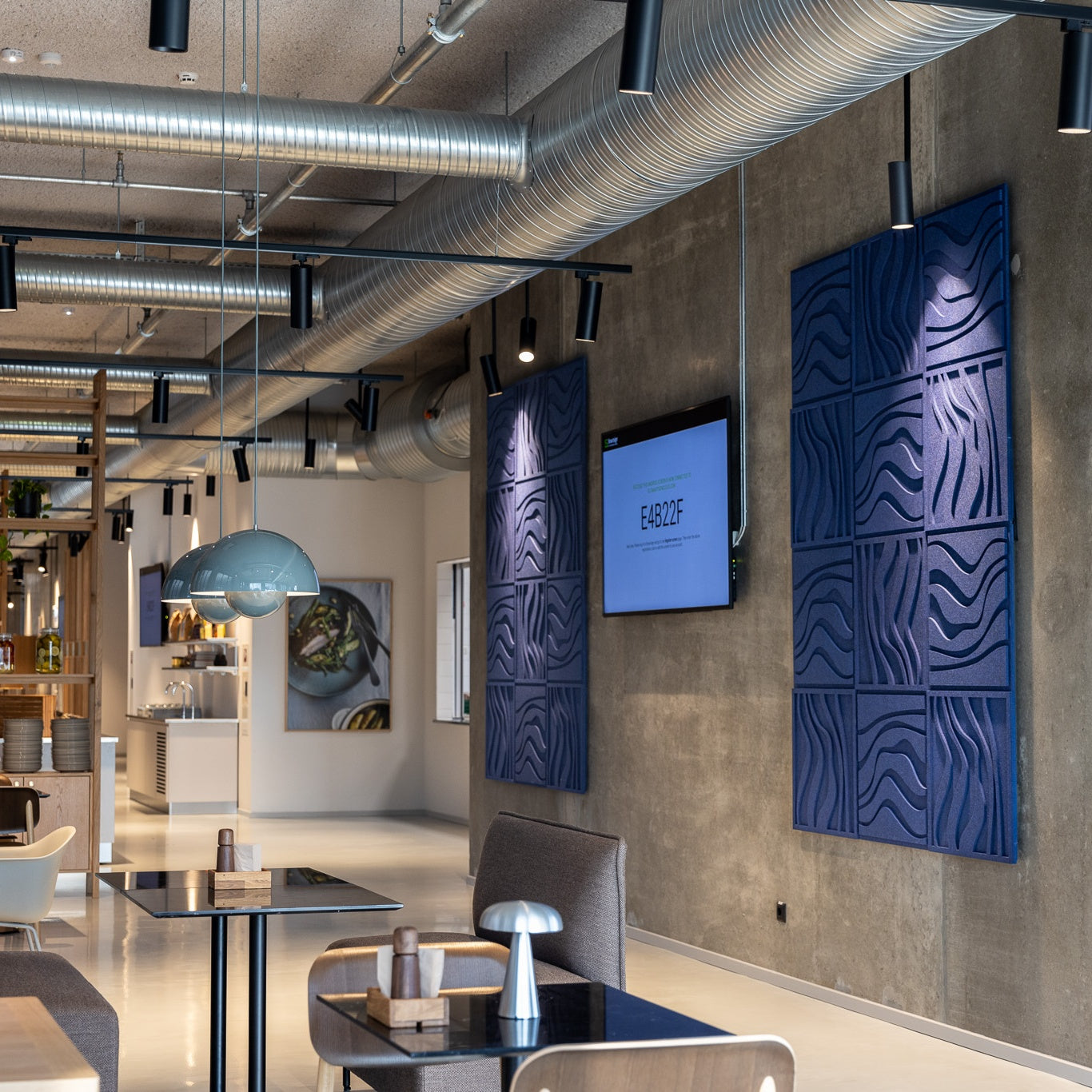 Arturel, a startup from Aarhus, has created a unique hybrid between art and acoustic panels. By using recycled materials, including PET plastic collected from nature and textile remnants from Kvadrat’s production, Arturel not only delivers a sustainable solution but also an aesthetic expression that adds character and depth to a space.