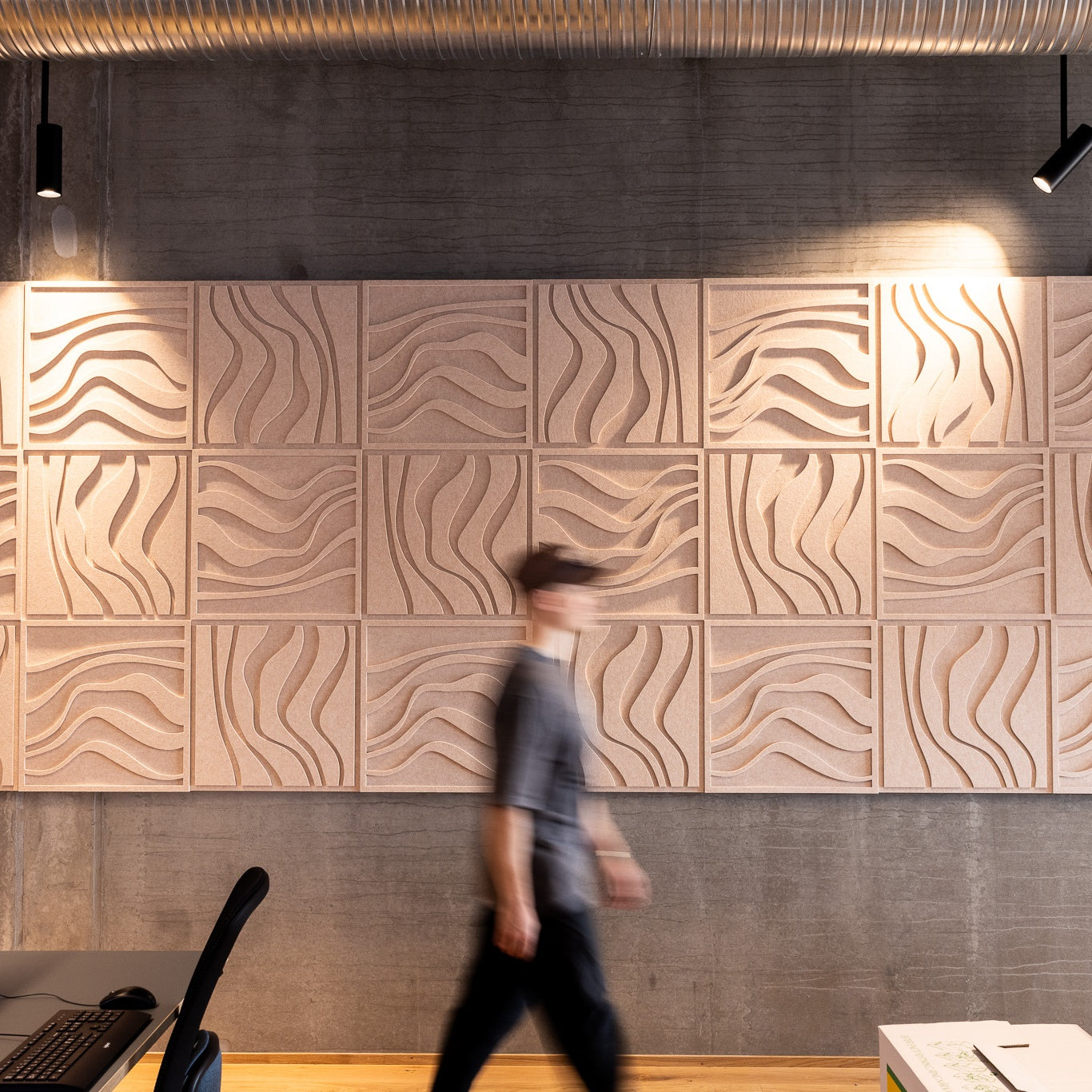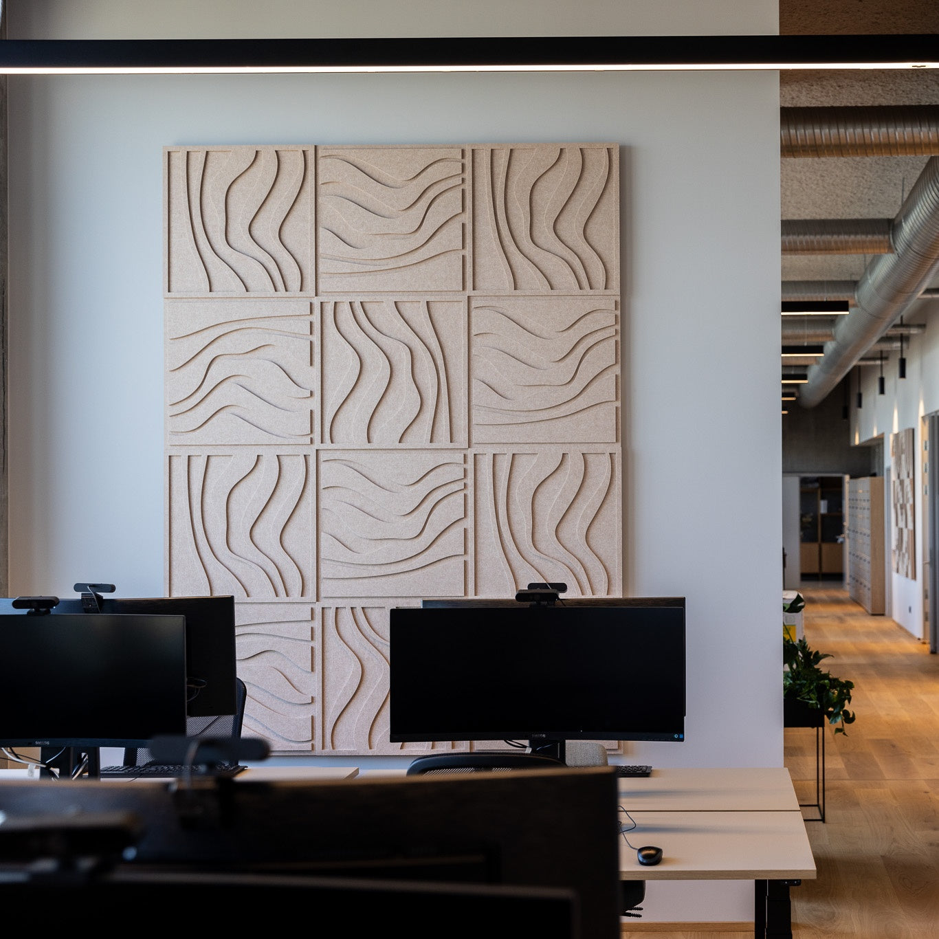 Our acoustic artworks are designed to create a sense of calm and a pleasant atmosphere, promoting increased productivity. Improve the acoustics in your office with eco-friendly recycled materials, carefully crafted and designed in Denmark.