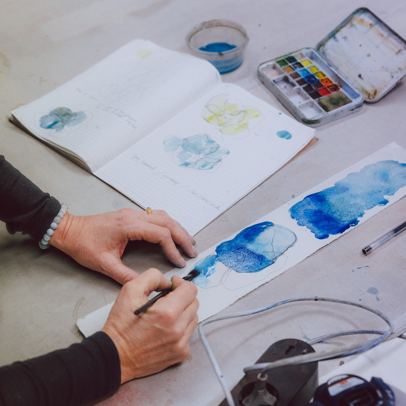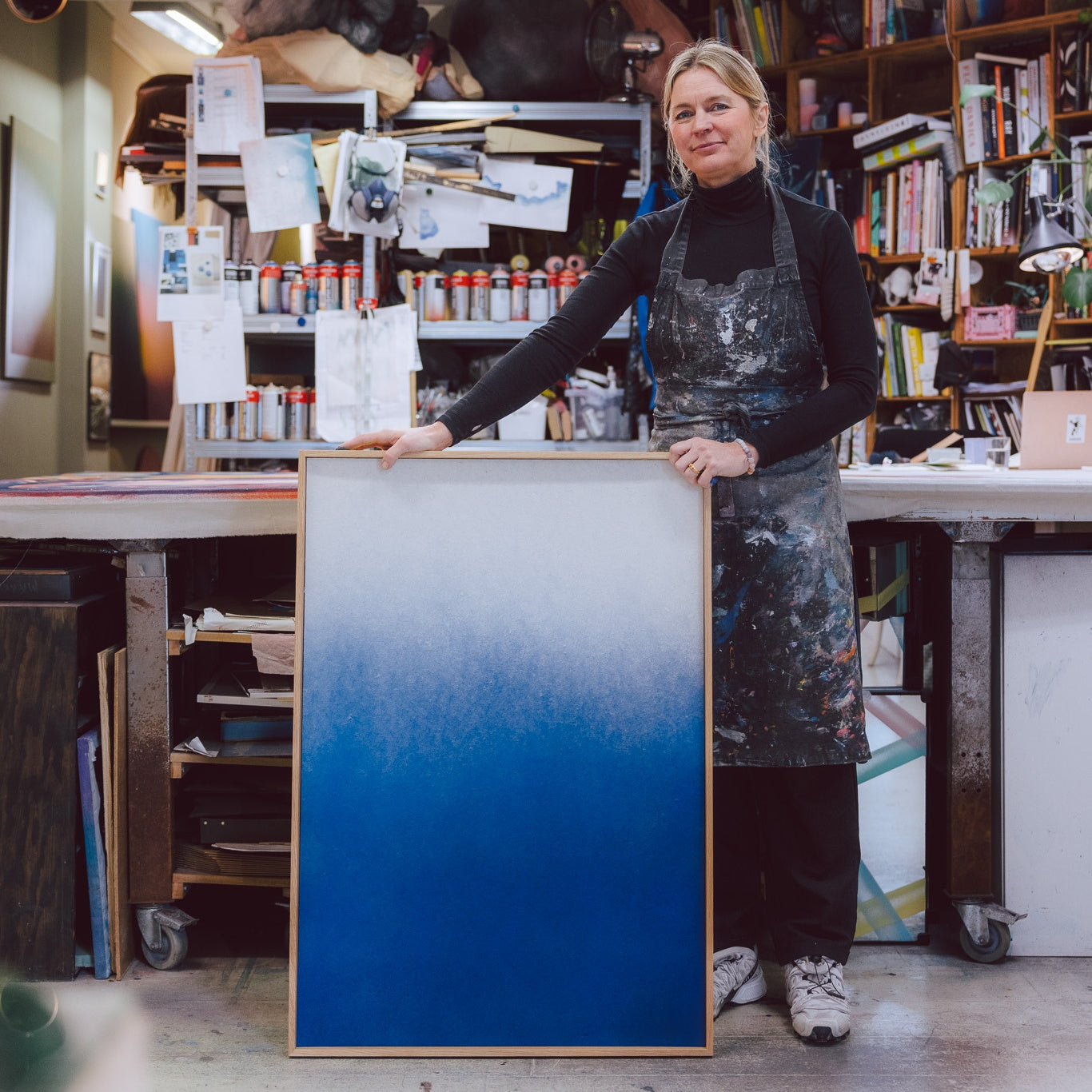 The skilled artist Anne Nowak, who hand-colored all the pieces in the collection, is deeply inspired by her origin and childhood on the smaller island Bornholm, where the Nordic landscapes and shifting light have had a significant influence on her work. Her art conveys the unique beauty that emerges when nature meets the abstract, bringing a special warmth and depth to any space.