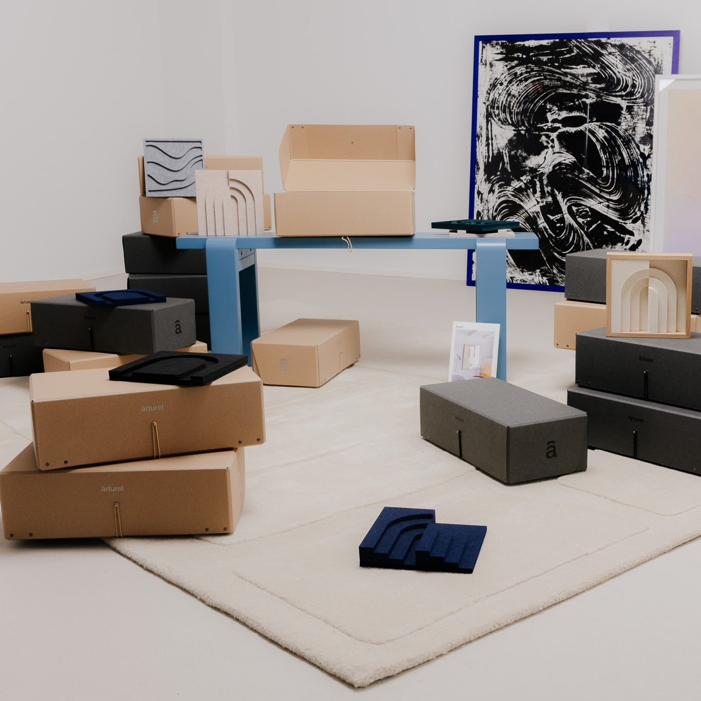 Our original Arturel artworks are made from recycled materials and ocean bound plastic. The material is then transformed into felt, from which we create our acoustic artworks.